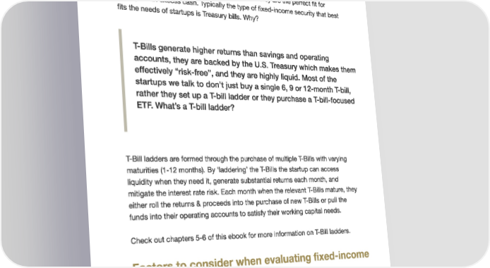 Treasury Management & T-Bill Ladders | Arc Page 11 Page 13The role of fixed-income securities in startups’ treasury management strategy Factors to consider when evaluating fixed-income investments